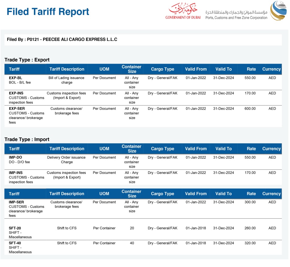 PROOF OF PUBICATION OF SEA CONTAINER CHARGES BY SERVICE PROVIDERS PERSUANT TO ARTICLE 7 OF ADMINISTRATIVE DECISION NO. 2 OF 2023